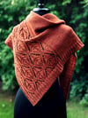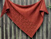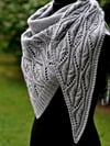 While dimensions and yardage are provided for DK weight, Tendrilly could effectively be worked in worsted or sport weight as well. The shawl is offered in two sizes—medium (pictured in light gray throughout the pattern) and large (pictured in rust on the last page).
