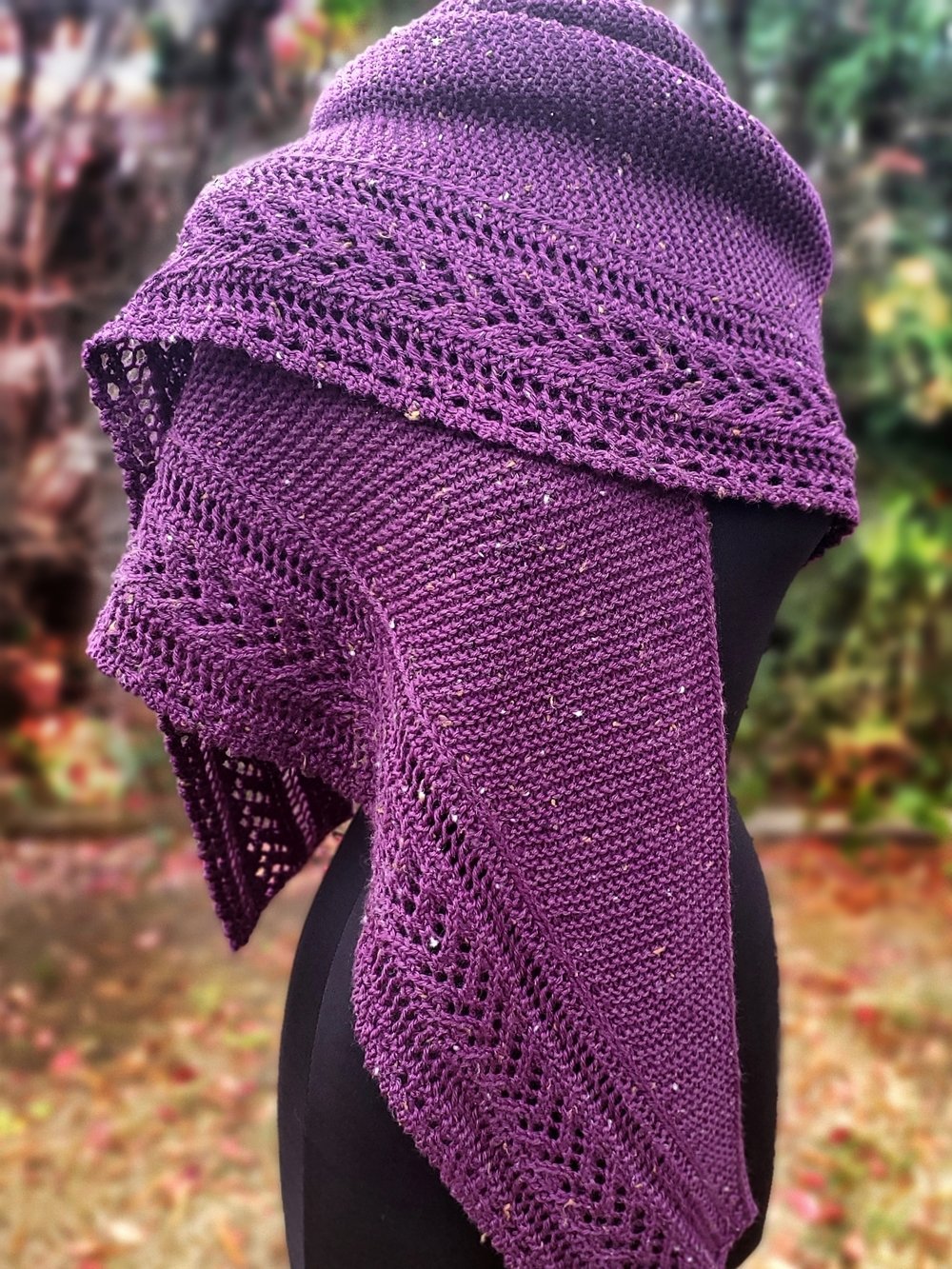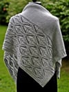 Tendrilly is a contemporary lace shawl featuring a deeply textured cable and lace panel filled with graceful, organic tendrils resting on a field of reverse stockinette. The asymmetrical shaping begins with just a few stitches which then flow into a wide panel of swirling lines framing delicate cables. The remainder of the body is filled with sleek stockinette stitch, which provides a lovely contrast to the texture of the panel. The bottom of the panel flows into a delicate ribbing, which finishes off the entire bottom edge.
